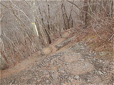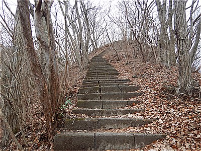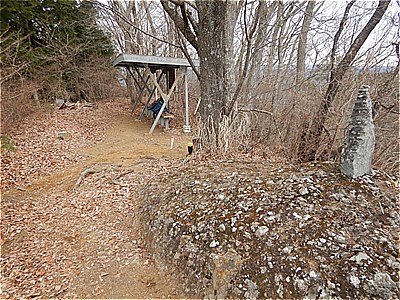 | 上の石碑の少し高いとこに石杭と月居山のプレートがある | 先に進む |