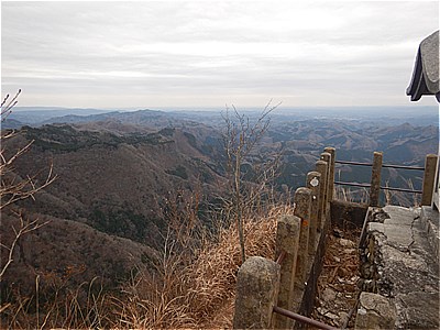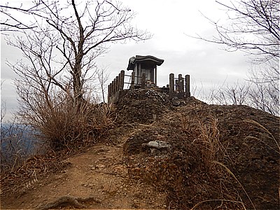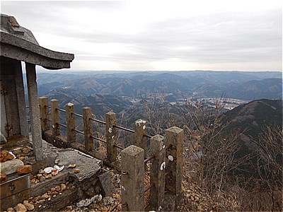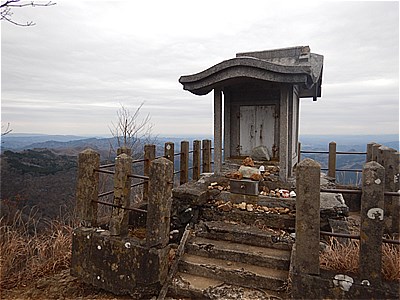 | 12:59 奥久慈男体山の山頂に着いた | 祠がある先は断崖絶壁 |