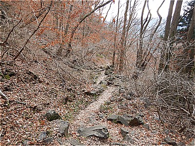 | 途中人工の杉林になる | 14:31 ここで健脚コースと合流 |