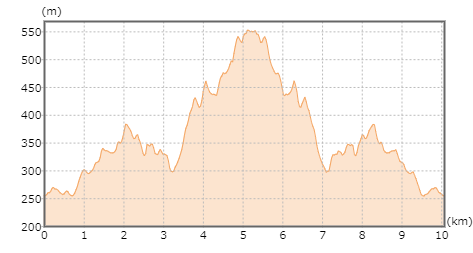 | 今回のコース断面図です。(出典:国土地理院ホームページ) |
