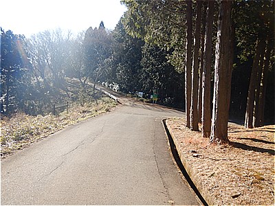 | 駐車場を車道に沿って出発する | 車道歩き |