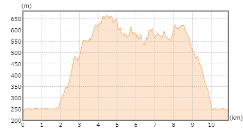 | 今回のコース断面図です。(出典:国土地理院ホームページ) |