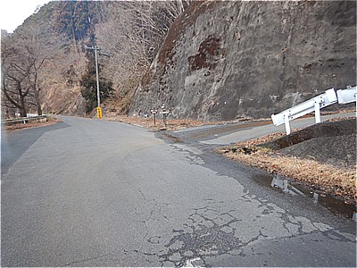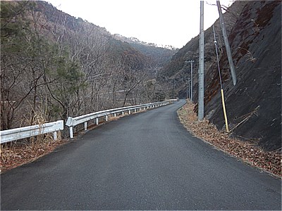 ダム湖の周りの車道をキャンプ場に向かう |