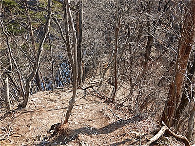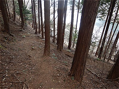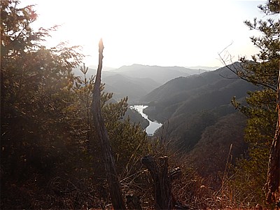 | ダム湖まで尾根道を下る |