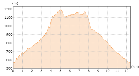 | 今回のコース断面図です。(出典:国土地理院ホームページ) |