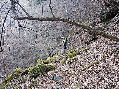 ほぼ前後に歩いてたおじさんがやってきた 足元が悪く急斜面なので気をつけないといけない |