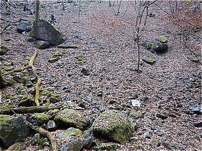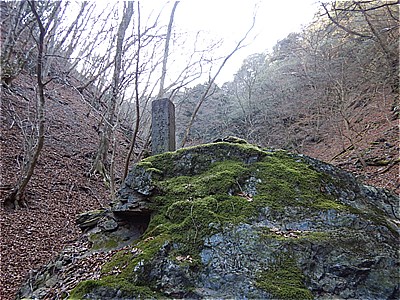 7:41 根本山神社の篭り(こもり)堂跡 近くに女人用のもあったそうで信仰が盛んだったらしい |