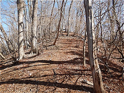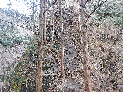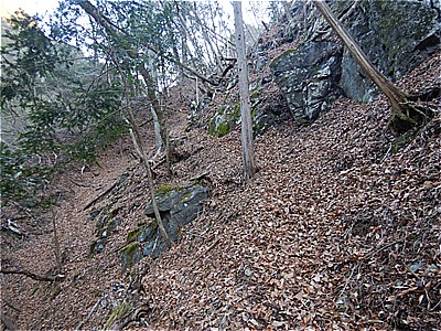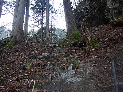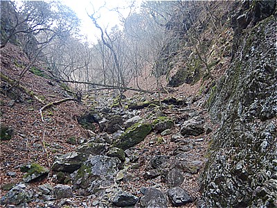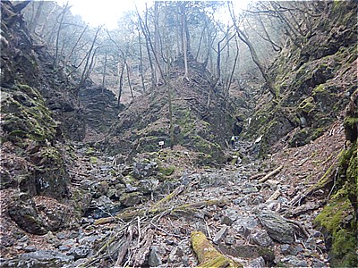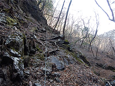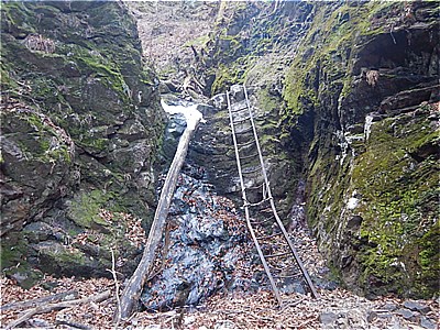 | 裏坂に進む 大昔の鉄梯子で枯れた滝を登る |