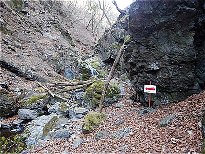 | 今日は直進する沢コースに向かう | 所々道標やリボンがあるが判りにくい部分がある |