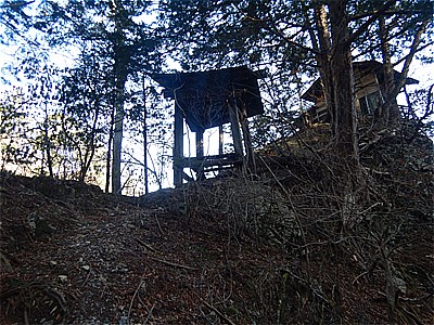 | 歩くのも怖い | 社の下には鐘つき堂もある |