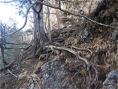 | 滝の左に移りロープ場を登る | ロープ場 |