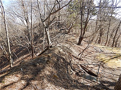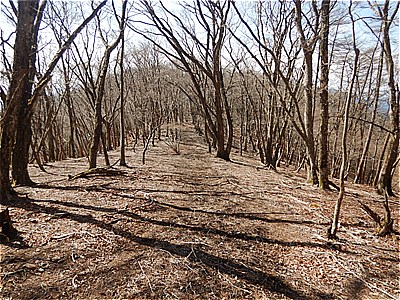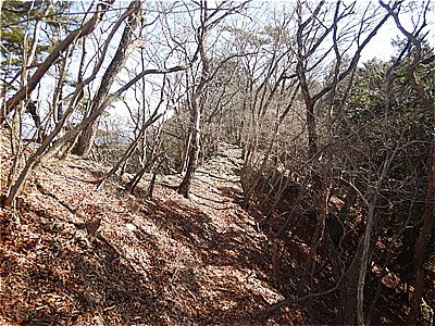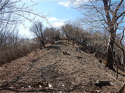 | 広く明るい尾根 | 櫓が見えてきた |