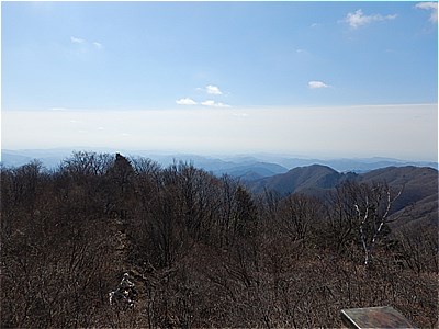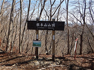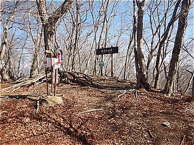 | 8:40 根本山(1199m)山頂に着いた | 広い山頂だが見晴らしは良くない |
