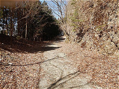 | 10:13 砂利の道に出た 右に進む | 沢に沿った砂利の林道をくねくねどんどん下る |