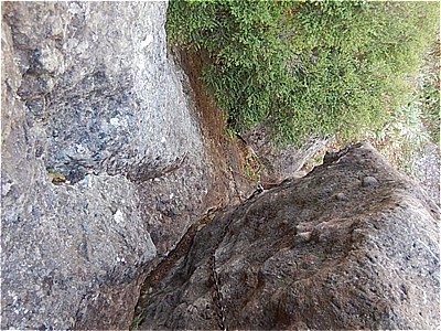 | 足場がないので鎖をしっかり握らないと滑落する |