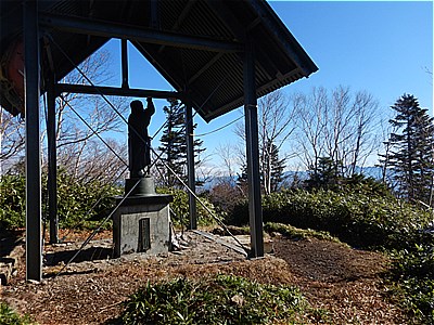 | 9:09 前武尊山頂に着いた(2039.7m) | ヤマトタケルの像が立っています |