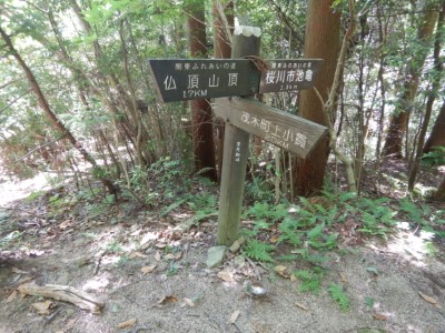10:19 仏頂山(430m)頂上に着いた? 三角点はあるが山頂標識が無いし眺望も無い |