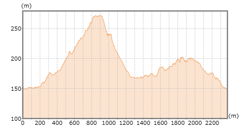 | 今回のコース断面図です。(出典:国土地理院ホームページ) |