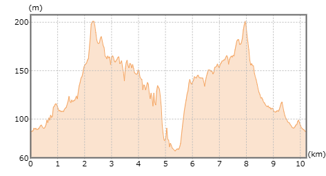 | 今回のコース断面図です。(出典:国土地理院ホームページ) |
