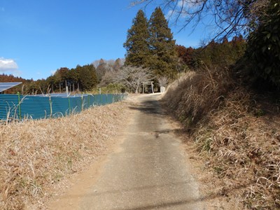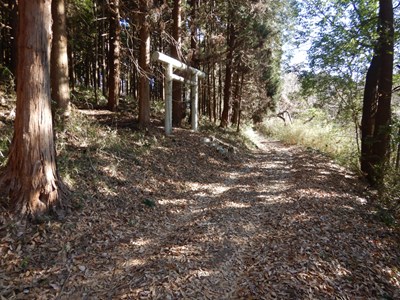 | 途中一部舗装されている | 遠くに鳥居が見えてくる |