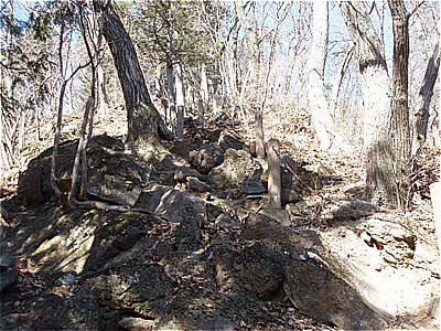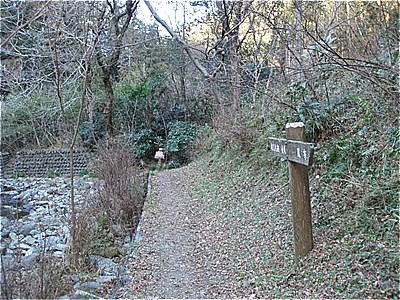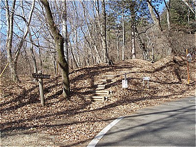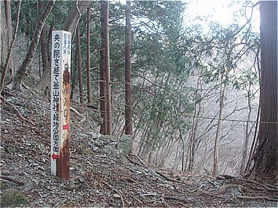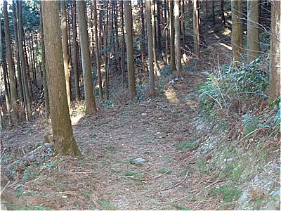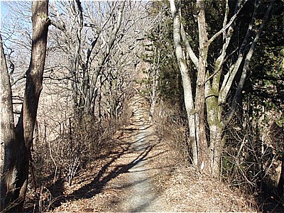 | 茱萸(ぐみ)ノ木峠 電柱と標識の間の山道を登る 11:38 |