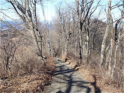 | 通信設備までの細い舗装路を下る | レストラン?跡地前の交差点 12:01 |