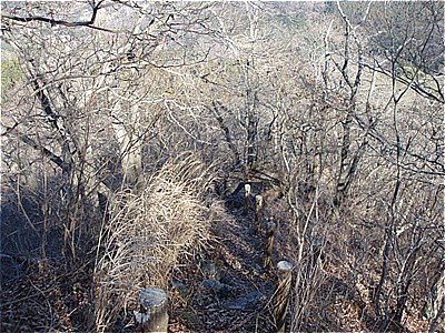 | 最後の人家付近から北の山を見る | 二本木峠 この辺りから整備された道 10:44 |