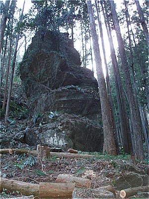大きな岩 この先夫婦滝まで遊歩道 その先は波久礼駅まで車道を歩く |