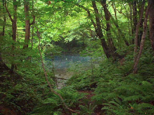 自動車用道路から多少山中に入ったところにある小さな池です。ここの水は青森県の名水にもなっているそうで、yosiも飲みましたが冷たくておいしい水でした。
