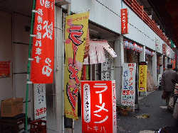 おもしろいのは並んでる間に紙を渡されて味の濃さ、こってり度、にんにく、ねぎ、チャーシュー、秘伝のたれ、麺の固さを指定できるのです。また席の前には暖簾があってそこからラーメンが出てくる仕組みです。(¥650)