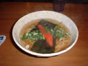 昆布ダシの利いたうどんの上に博多名物のめんたいこが1はらそのまま乗っかってます。(¥700