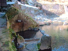 ↓大きな露天風呂の前の通路の下に小さな露天風呂もあります。まさに川のまん前です。