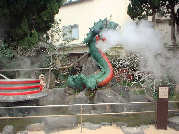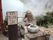 血の池地獄は割と有名ですよね。文字通り血のような真っ赤な色をしております。温度は78度とやや低めですがもちろん落ちたら地獄が待っています。園内奥には名物の「血の池軟膏」が売っていてこれはここの赤い粘土で皮膚病(水虫など)に良く効くそうです。売ってるオバチャンの案内&説明がおもしろいです。