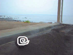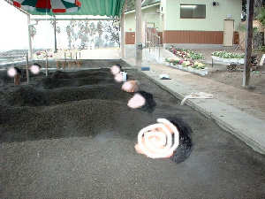 首だけ残して埋めてもらいます。最初はじんわりと暖かで20分もたつとお尻が熱くなってきました。砂の重さがいいマッサージ効果?があって気持ちいいです。