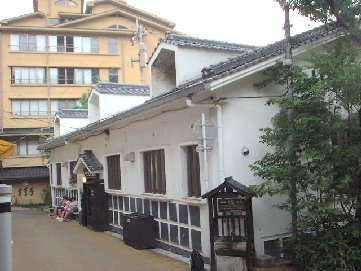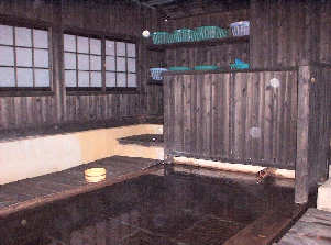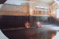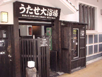 筋湯の共同湯の中でも有名なのがうたせ大浴場です。男女別の広い浴槽の奥には3m位の高さから落ちる打たせ湯がそれぞれ18本並んでいます。面白いのは入場料(\300)を入口の自動販売機で買ったメダルを入れて回転するドアを押して入る仕組みになっているところです。