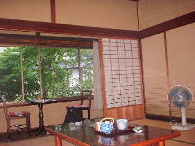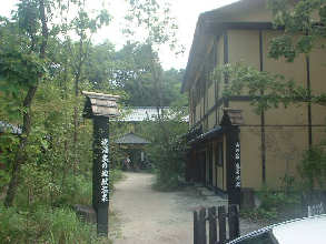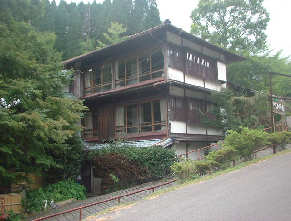 再び寒の地獄からバスに乗り今夜の宿のある「筌の口(うけのくち)温泉」に向かいます。バス停からは歩いて10分ほどです。泊まることにした小野屋は開業1900年という木造3階建の古い旅館です。建物も右半分は明治時代のもので釘を一切使っていないそうです。ま、そういうわけで設備はいいとは言えません。冷房もなくて扇風機があるだけです。洗面所もドライヤーもない古いものです。宿の大女将に聞くとご主人が「自然が一番」という考えで食事も含めてあえてそうしているのだそうです。そしてかの川端康成もここに2度逗留して未完に終わった「波千鳥」の執筆を行ったそうです。その時の写真も見せていただきましたヨ。
