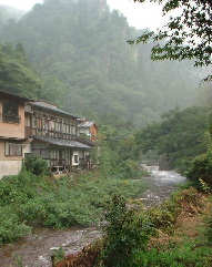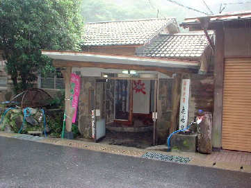 宿に戻ると温泉へ。ここの温泉は2つの内湯で露天風呂はありませんが貸切の家族風呂となっていてのんびりできます。左の写真の方がお勧めで脱衣所から浴室へ入るとある階段を降りたとこが浴槽となっています。写真で見るより広いカンジです。下ったところにあるので窓から光と風がたくさん入って気持ちイイです。この大きな岩は宿の出来る前からあったそうですよ。泉質は単純泉で無色透明、源泉43℃をそのままひいておりリウマチや疲労回復に効果があります。そして笑えるのが入口に備えられた札。y osiはもちろん「いい♂んし入浴中」の札を。。。