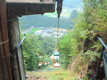 リフト乗場から頂上までは1人乗リフトがあります。(山頂まで往復¥840)羅漢寺駅まではおよそ5分です。羅漢寺駅を降りて茶店で一休み。お店のオカミさんが出してくれたウリの漬けものが美味しかったです。