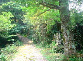 ↑石畳の旧参道 途中禅海の墓もあります