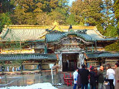 東武ワールドスクウェアを出て再び日光市内へ戻ります。最後は東照宮で一足早い初詣(?)と言うことになりましたが、温泉に行きたいという声もあって駆け足での見物になりました。みんな修学旅行とかで来た事はありましたが、改めて見るといいものです。ちょと混んでましたがネ。今年の干支の三猿の前や眠り猫の前は人が一杯でした。本地堂にある鳴竜というのは天井に竜の絵があってちょうど眼の下で拍子木を鳴らすと反響がして竜の鳴き声に聞こえるものです。