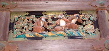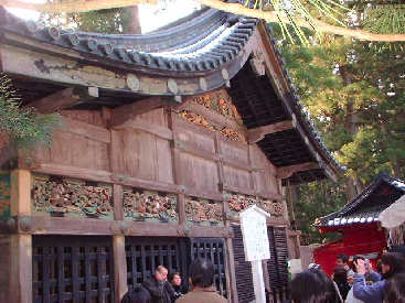 ↑神厩【世界遺産】 有名な「三猿」は左から2個目です。今年は申年と言うことでか人もいっぱいでした