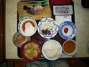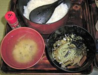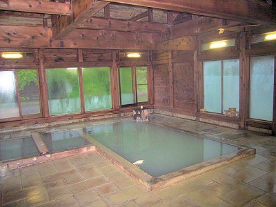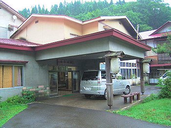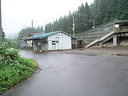 ほどなく見終わってしまい、食堂でコーヒーでも飲んでいたら雨も少し強くなってきました。「あ〜やっぱ宿の人の言う通りにすればよかったかな」などと思っていました。時間はまだ昼前です。宿となる日景温泉の方には隣の駅の陣場駅に夕方迎えに来てもらうことになっていますが、雨だし見るものも他になさそうなのでとりあえず歩いて10分程の津軽湯の沢駅まで行って見ましたが、無人の駅の周りには何もありません。仕方なくやってきた電車に乗って隣の陣場駅まで行ってみることにしました。 |