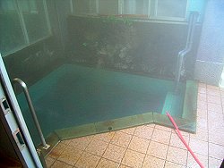 浴槽は5人位入れるタイルで、お湯は無色透明の適温でした。底には、