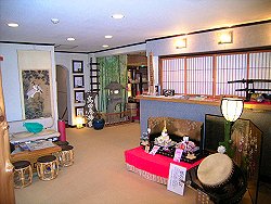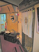 高田屋旅館は1795年の創業です。元は豆腐屋を営みながら湯治客を泊めていたのが始まりだそうです。ここも数年後にはダムに沈むわけです。玄関に入るとお雛様がお出迎えをしてくれました。古い旅館らしく昔使った家具や道具があちこち展示されたりして雰囲気があります。受付を済ませていると砂風呂(別料金)はどうしますか?と言われました。1回に3人ほどずつで時間を指定するようになっているそうで、早速お願いすることにしました。浴衣だけ着て案内されると部屋の中に砂が敷いてあり、浴衣のままくぼみに寝て係りのヒトに砂で埋めてもらうわけです。砂には塩と酵素が混ぜてあって血行がさらに良くなるそうです。15分間そのまま寝ているわけですが、床の部分が結構熱い。お尻が熱くて横になったりじっと我慢してましたが、後日見るとお尻が火傷していました。部屋は広いのですが1回3人ずつ、yosiはかっぽー2人組みと一緒ですっかりオジャマ虫らしかったです。記念に写真を係りのヒトに頼んで撮ってもらいましたが後で張り紙を見たら「写真撮影禁止」だそうです。係りのおねいさん、ありがとう。