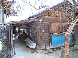 メイン道路から路地を下っていくと笹湯という共同湯があります。男女別の湯舟がそれぞれあるだけ(女湯は不明)で無人のため箱に料金を入れる仕組みです。外観は雪も積もってかなり古いので「大丈夫か?」と思ったのですが、入ると広い浴室はキレイに掃除され気持ち良く入浴できます。これは地元の子供たちが管理をしているためだそうです。