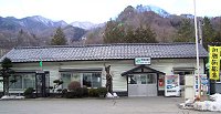 中之条からJR吾妻線に乗り、川原湯温泉へと向かいます。川原湯温泉駅で降りるところですが、吾妻渓谷に寄るため1つ手前の岩島駅で電車を降りることにしました。電車は国道145号線と吾妻川と並んで走ります。岩島駅はホームに雪が積もっていました。無人の小さな駅です。
