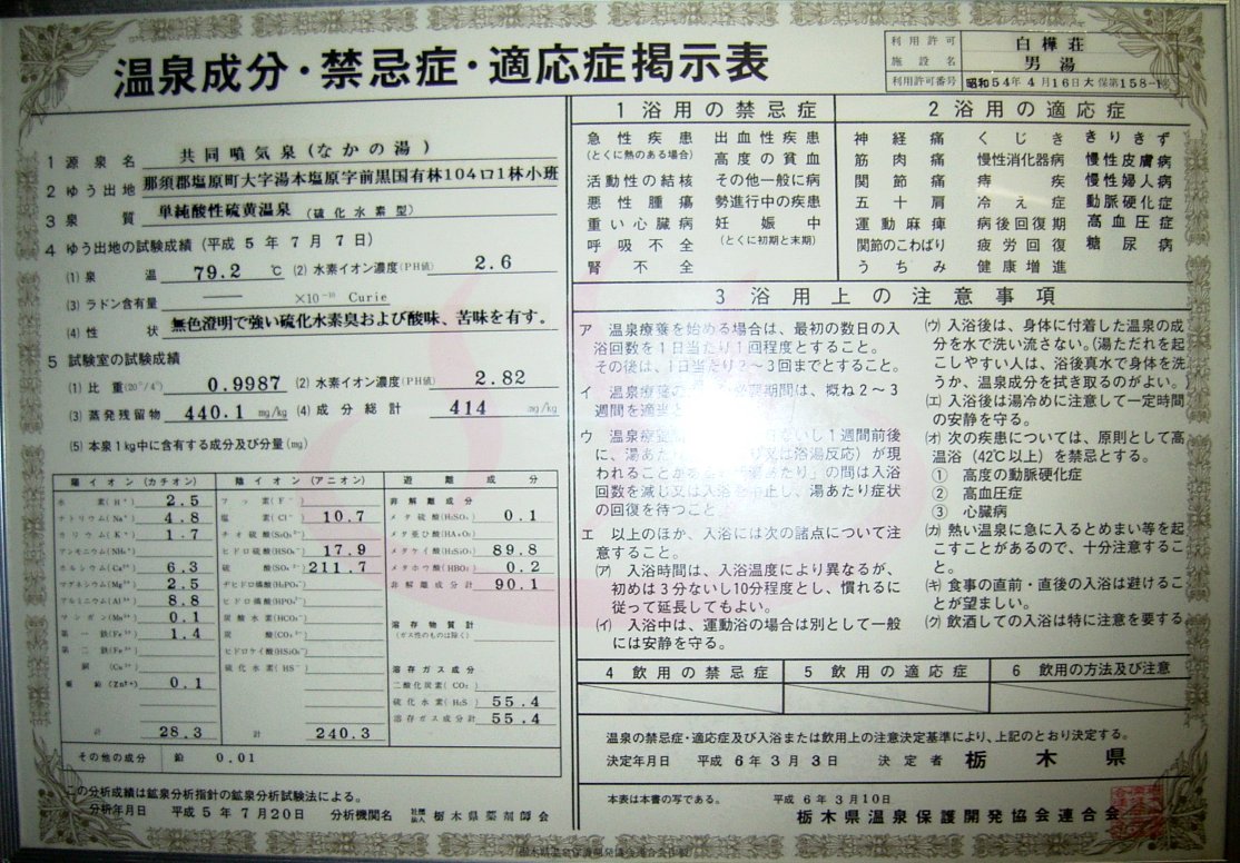 9時過ぎの塩原温泉からのバスに間にあるようにタクシーを呼んでもらい宿を後にしました。この宿はお湯はいいし、静かにのんびりできる良いとこだと思いましたが、設備面では温水シャワーが出ない(温泉成分を流さない様に敢えてそうしてるのか)など若干観光客向けではないかな、という気はします。地域の共同湯もお湯はいいのですが利用時間など工夫が欲しいところです。観光目的というよりは湯治目的、温泉マニアのヒト向けの温泉場だと思います。今回は前後の日が仕事のため非常に慌しく写真など撮ってる余裕も無かったのですが、それでもタクシーで行ってまでも十分満足できるものでした。