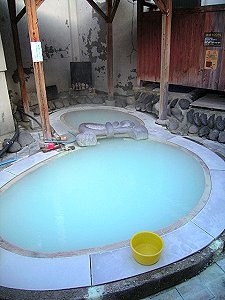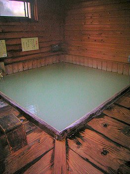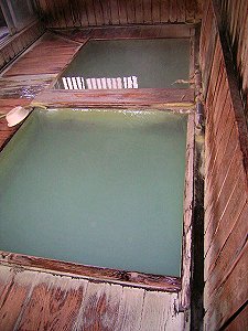 白樺荘の隣にある混浴の共同湯です。昔お寺があったので寺の湯と呼ばれます。やはり7:00になっても鍵が閉まったまま開かないようなので、宿の人に言って鍵を貸していただきようやく入ることが出来ました。寺の湯源泉は酸性含硫黄-アルミニウム-硫酸塩泉という泉質で、源泉温度は74.3℃、phは2.2です。木製の浴槽が2つあり他の共同湯は男女別に仕切られ狭いカンジですがここは広々しています。もちろん他に誰もいないので早速浴槽にと思ったら、熱い!とても入れたものではないです。しかたなく片方の浴槽のお湯口に栓をして水道水で少し薄めようやく入れました。この日は夜になっても体がポカポカしていました。