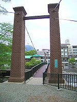 夕食を食べ温泉に浸かりのんびりコタツに入ってテレビを見ているとウトウトしてきました。川の音を聞きながら何時の間にか寝ていました。翌日は朝早く起きて、前に聞いていた共同の露天風呂「青葉の湯」に出掛けてみました。宿から川に沿って5分ほどで箒川にかかる大きな吊り橋を渡るとありました。橋は去年出来たと書いてあり、露天風呂には真新しい脱衣所もありとてもキレイに整備されていました。しかし。。。お湯が入ってないではないですか!!!宿のご主人の話では最近露天風呂も整備したのですがお湯の供給を反対している人がいるらしいのです。確かにいろいろ事情はあるのでしょうが残念なことです。