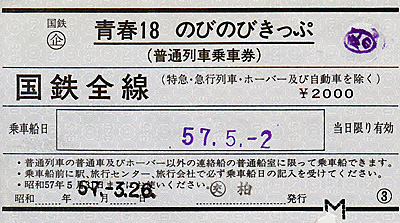 | 一番最初の青春18きっぷは「のびのびきっぷ」と言いました。 |